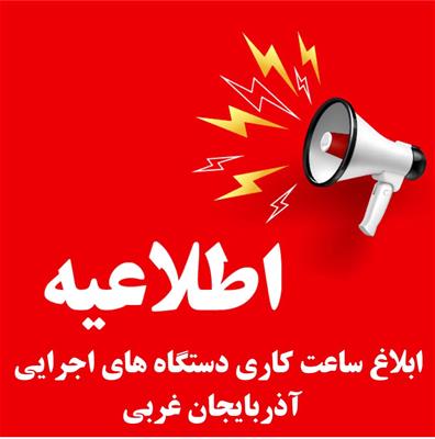 ابلاغ ساعت کارى دستگاههای اجرایى استان آذربایجان غربی